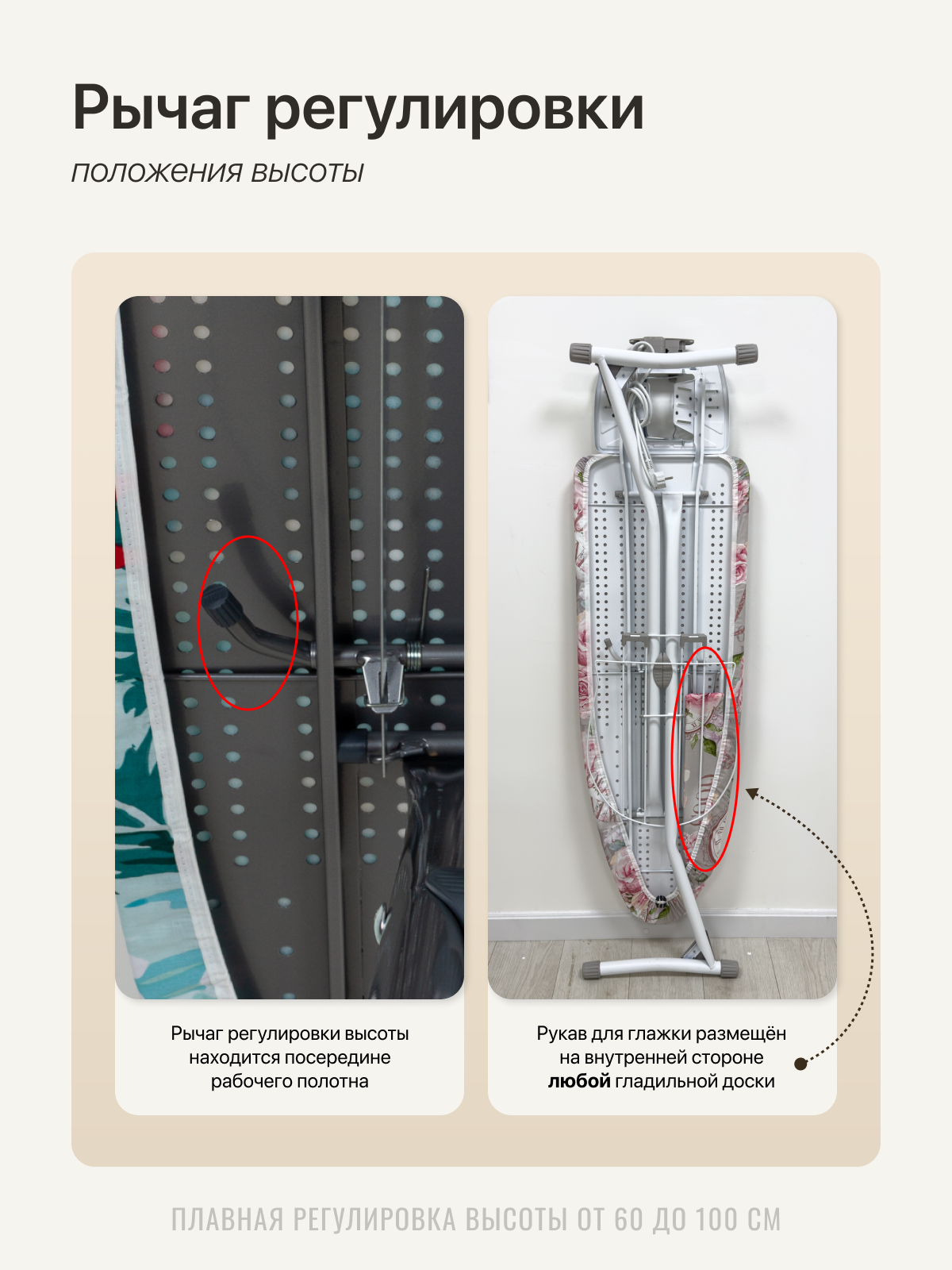 Доска гладильная Ника Грант 1220х42см. металл. выс.до 1м. НГ/2 с тропическими листь интересное: