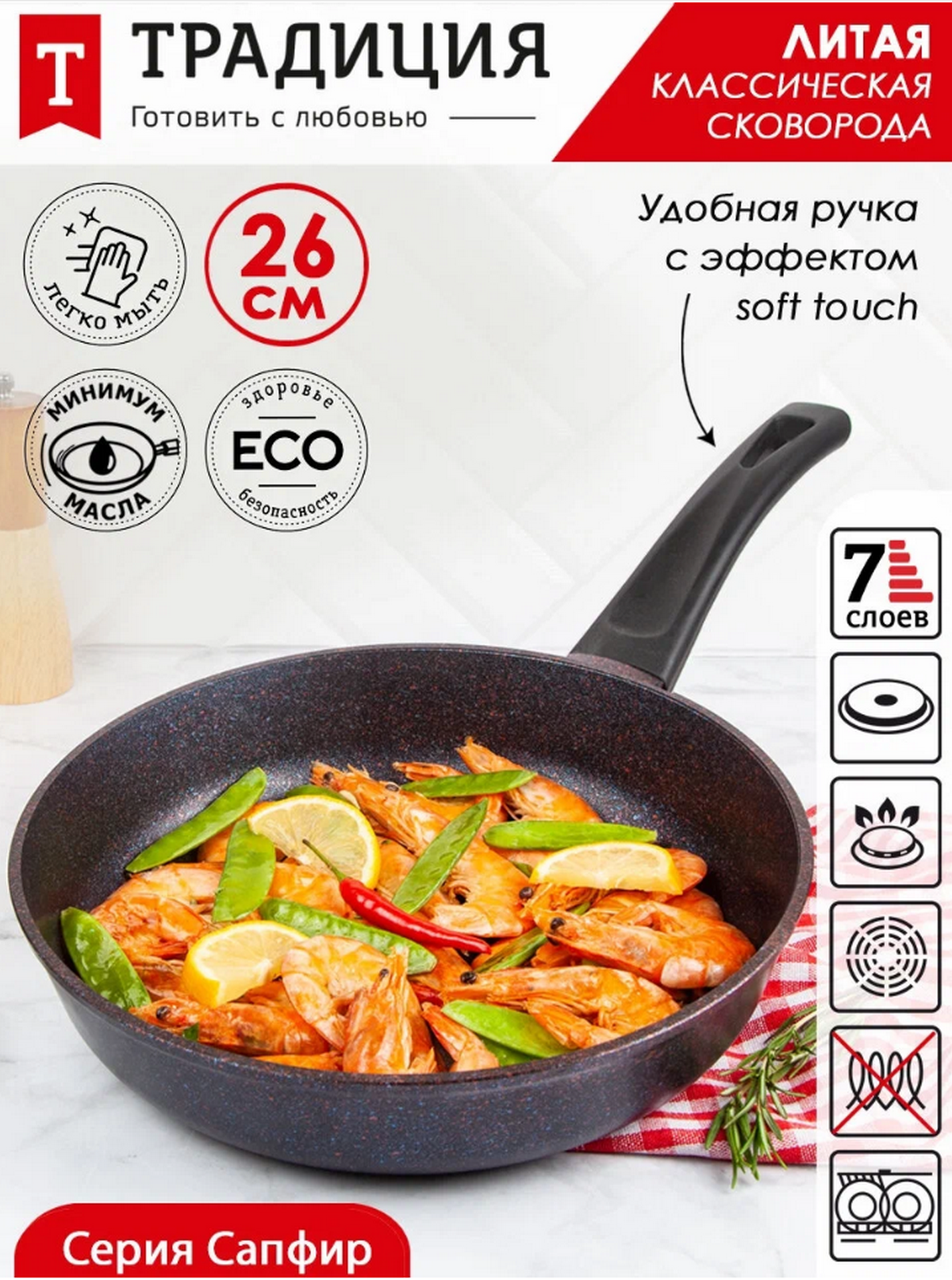 Купить Сковорода антипригарная литая 26см Сапфир ТМ Традиция готовить с любовью