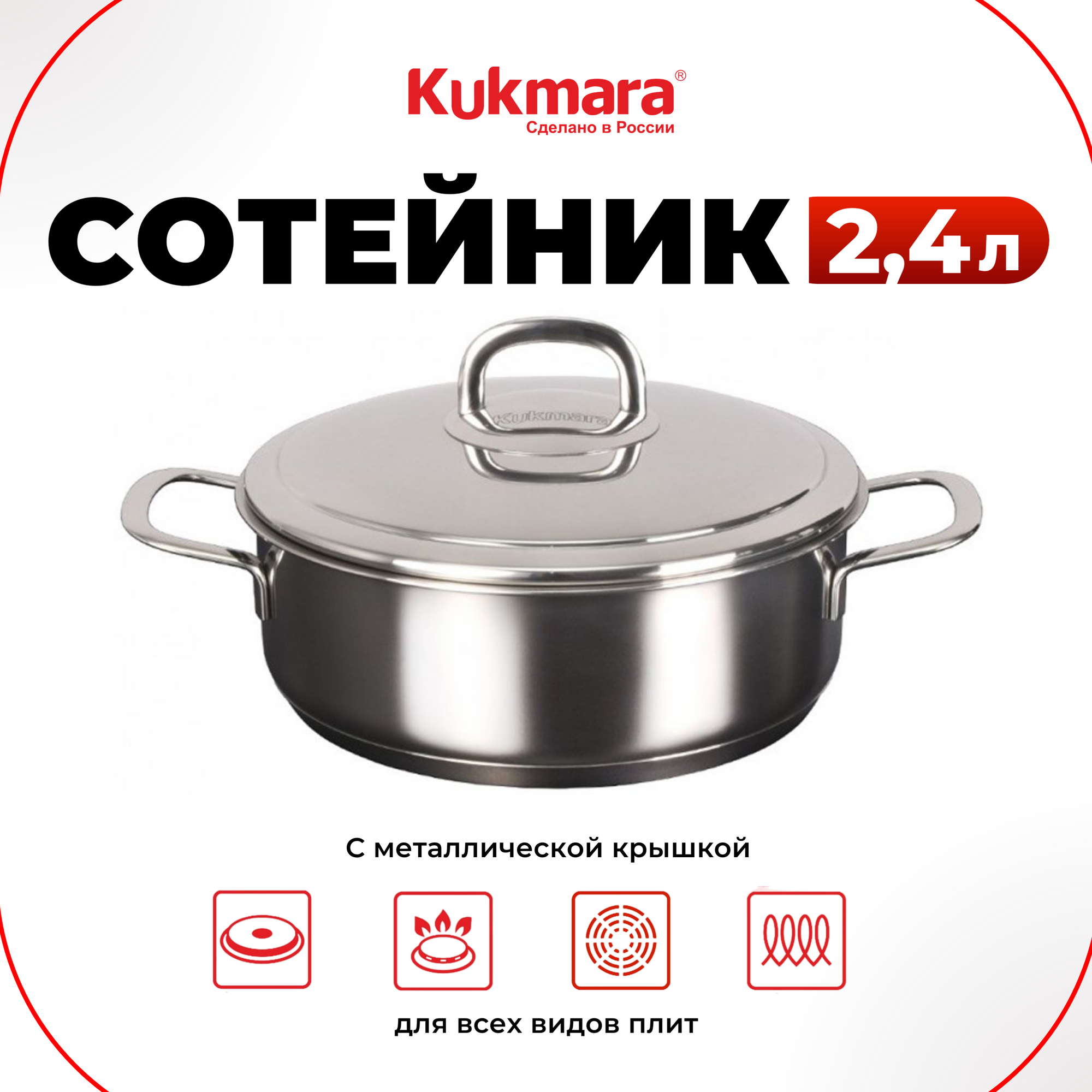 Сотейник для индукционной плиты Кукмара 24 см. с крышкой SF-STP3124G