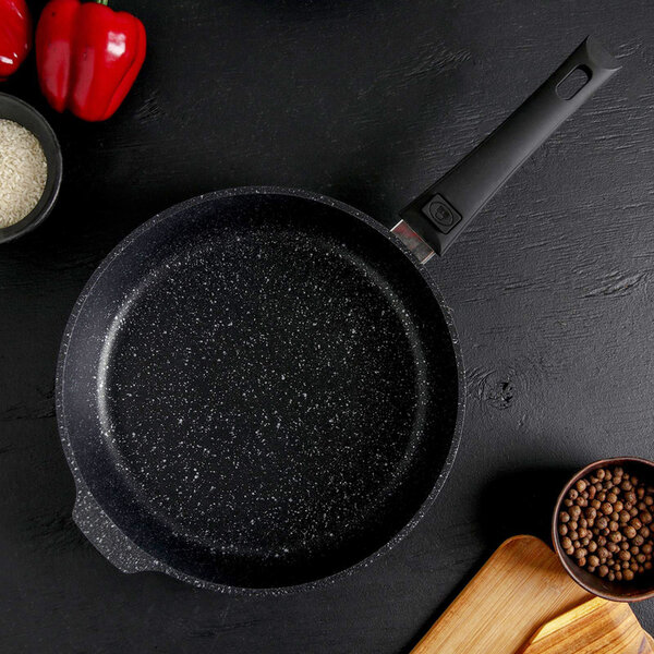 Сковорода, d=28 см, съёмная ручка, антипригарное покрытие, тёмный мрамор KUKMARA 4611506 . интересное: