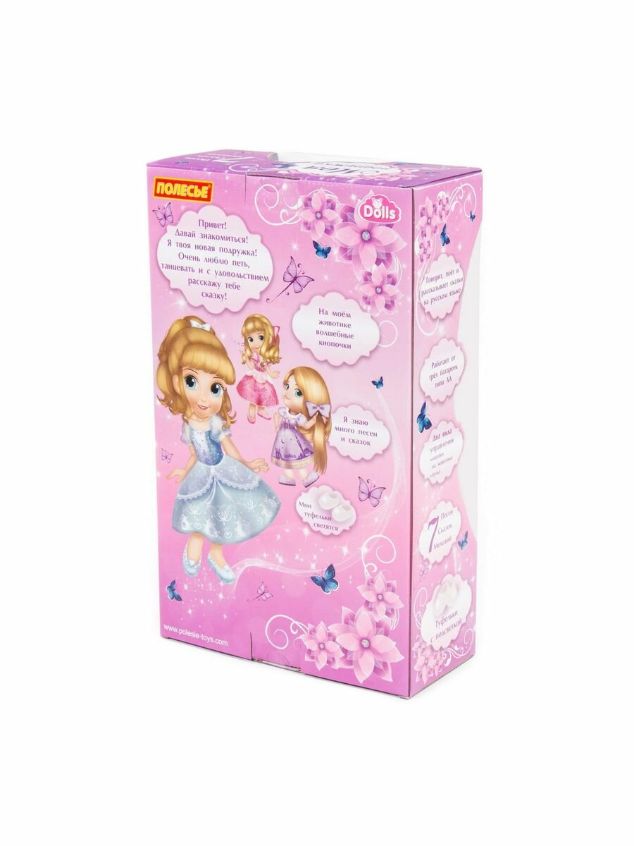 | Дополнительная информация | кукла знает 7 сказок: Колобок, Репка, Курочка Ряба, Лисичка-сестричка, Теремок, Коза-дереза, Лиса и журавль. Исполняет 7 песен: Весёлая задорная, Жили у бабуси, Считалочка, Мишка, Давай петь, Каравай, Колыбельная |