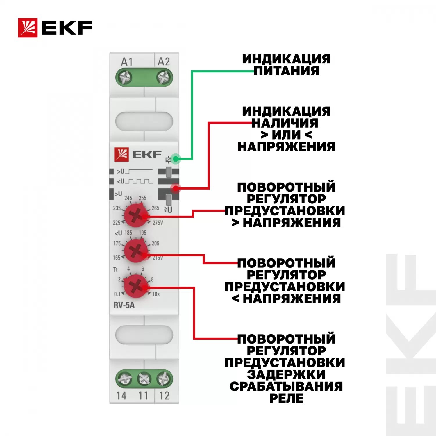 Реле напряжения параллельное подключение PROxima , EKF RV-5A (1 шт.)