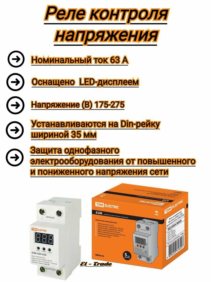 Реле напряжения Tdm Electric АЗМLED-63А-220В, SQ1504-0020