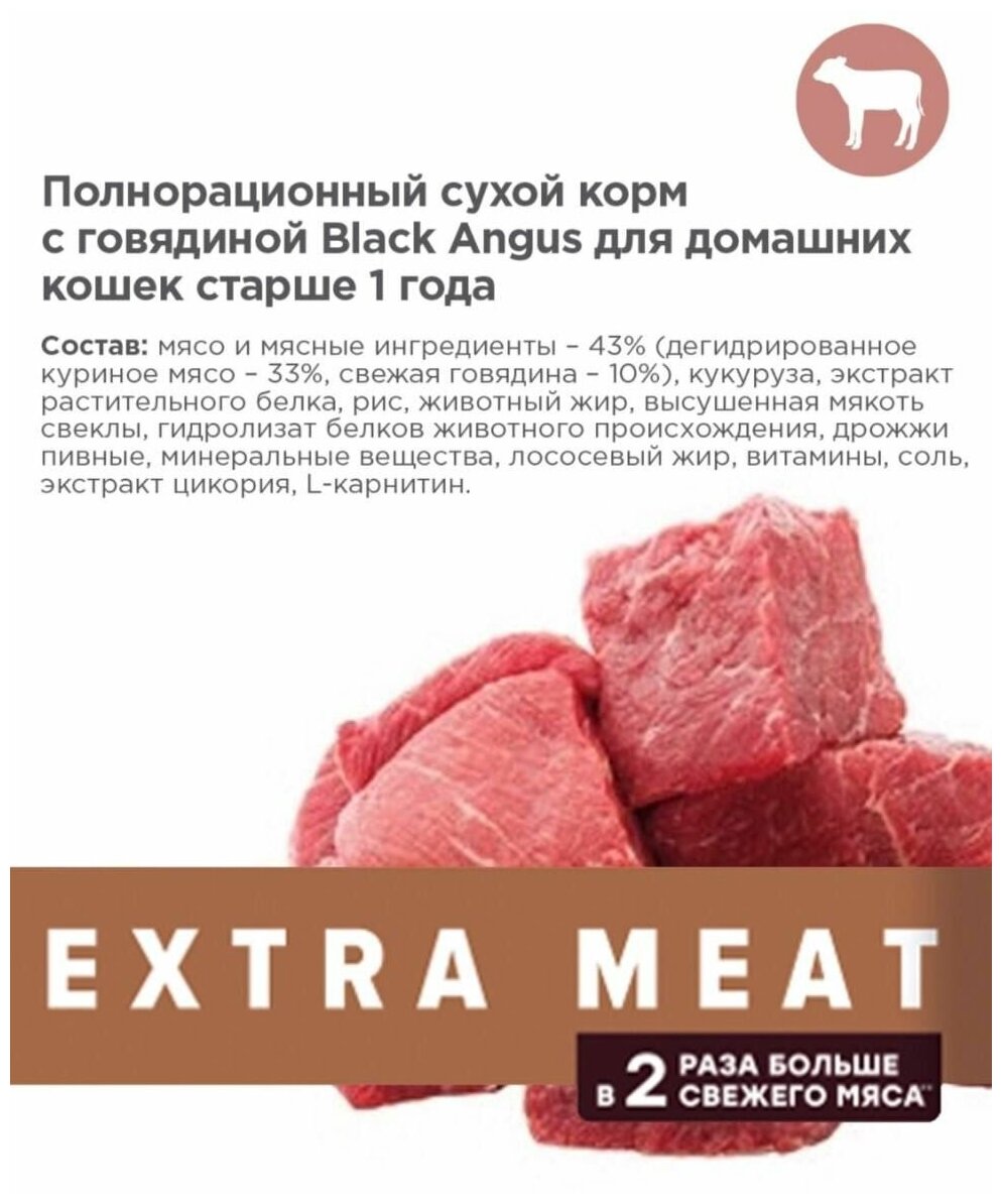 Полнорационный сухой корм Мираторг Extra Meat с говядиной Black Angus для домашних кошек старше 1 года 1,2 кг