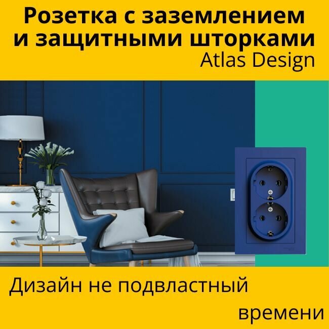 СохранитьРозетка электрическая двухместная Systeme Electric Atlas Design с заземлением, в сборе 16А, Аквамарин ATN001124 - 10 шт. интересное:
