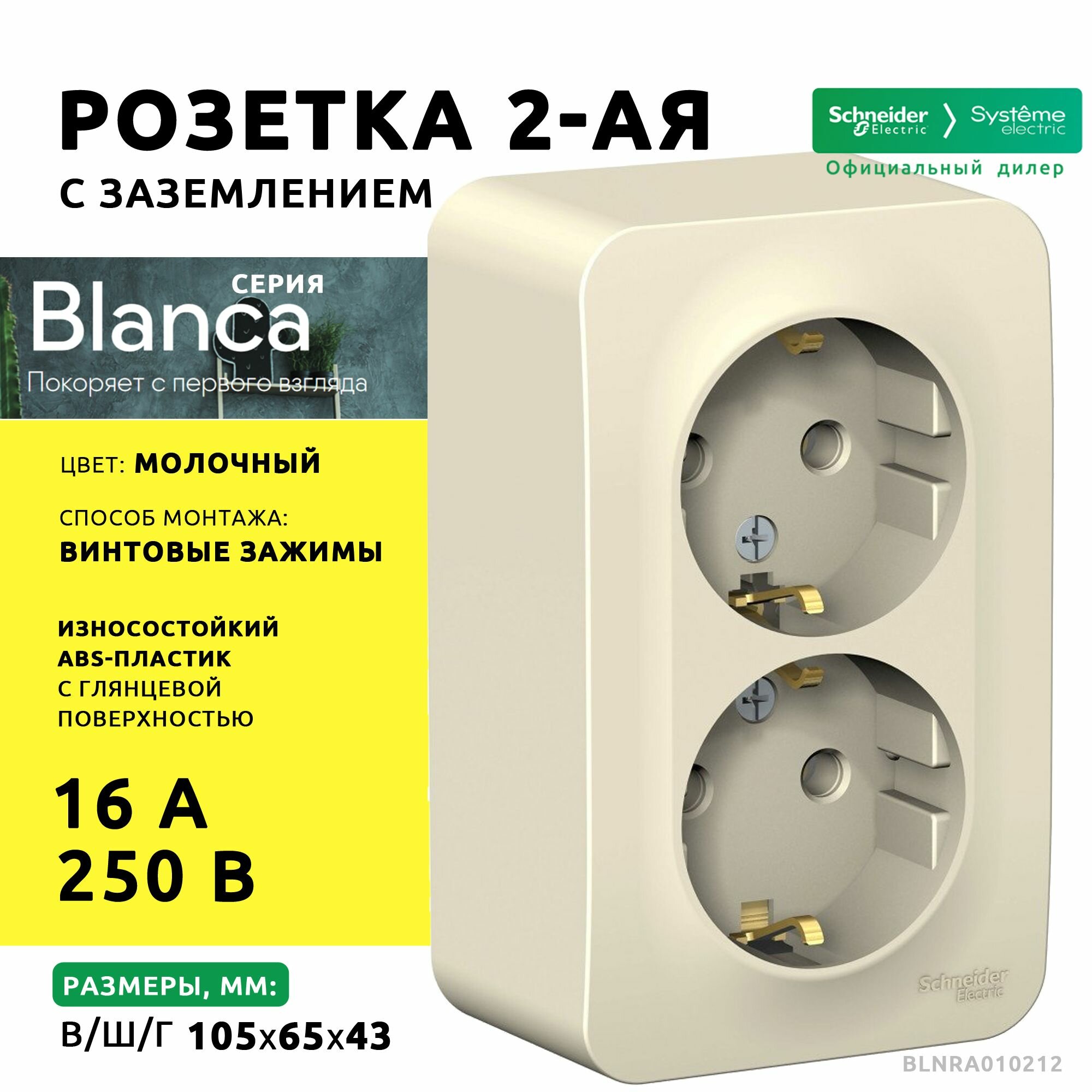 Розетка двойная 2 м с заземлением Blanca молочный накладной монтаж (Schneider Electric), арт. BLNRA010212