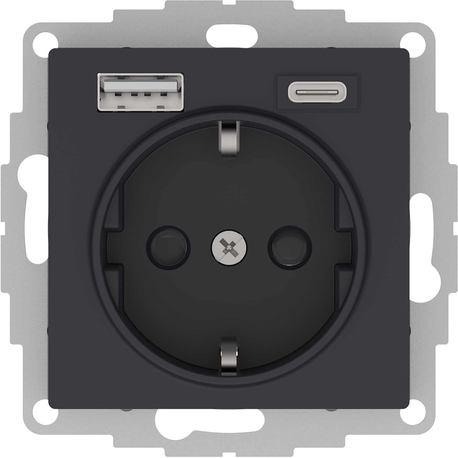 Розетка SCHNEIDER ELECTRIC ATLASDESIGN 16А с 2 USB A+C, механизм, карбон, ATN001032