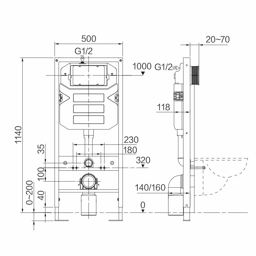 Vincea Инсталляция для унитаза Vincea VIS-601, 500x1112