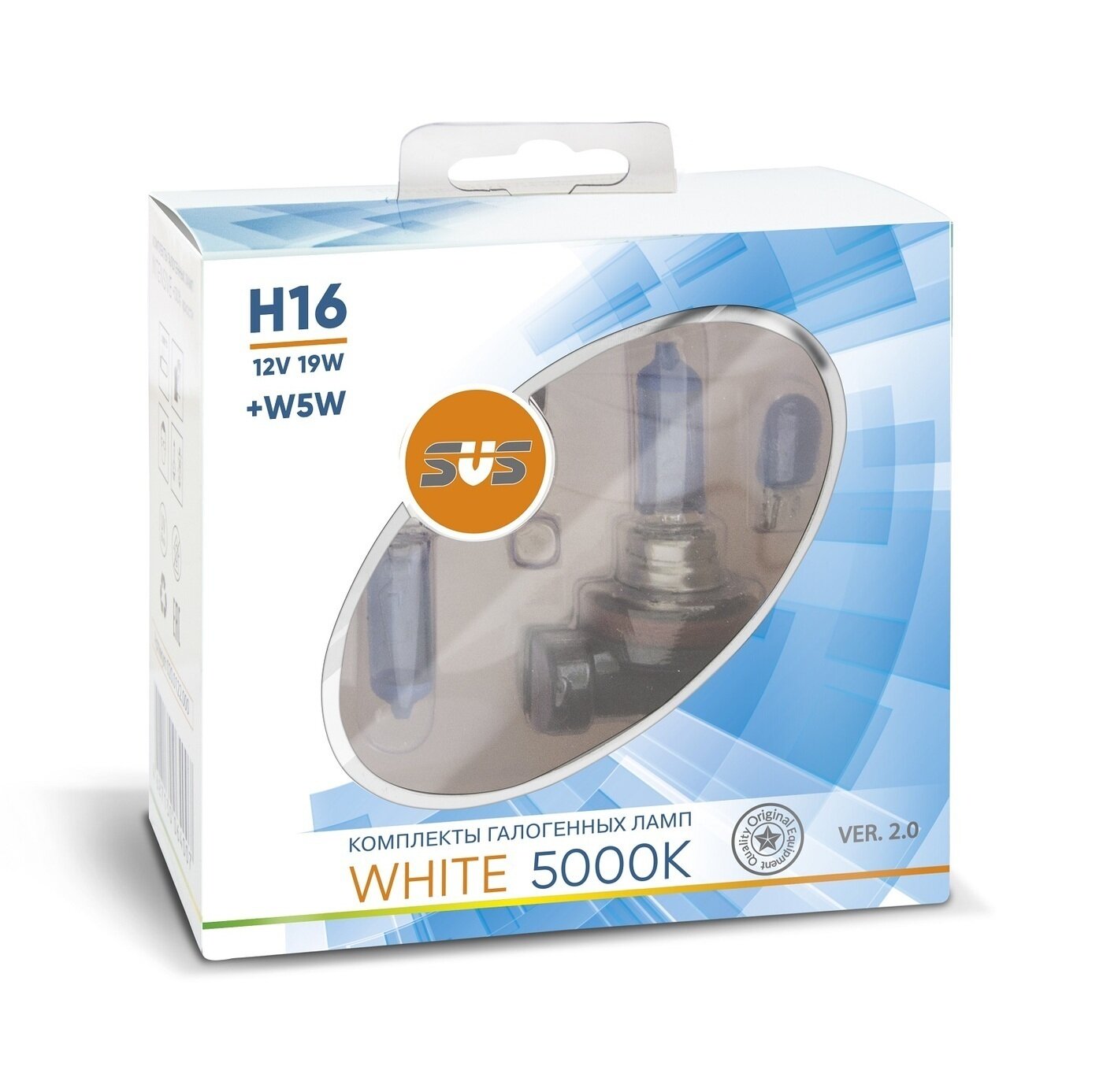 Лампа автомобильная галогеновая H16 SVS White 5000K 12V 19W+W5W PGJ19-3 (комплект 2шт.) 0200114000