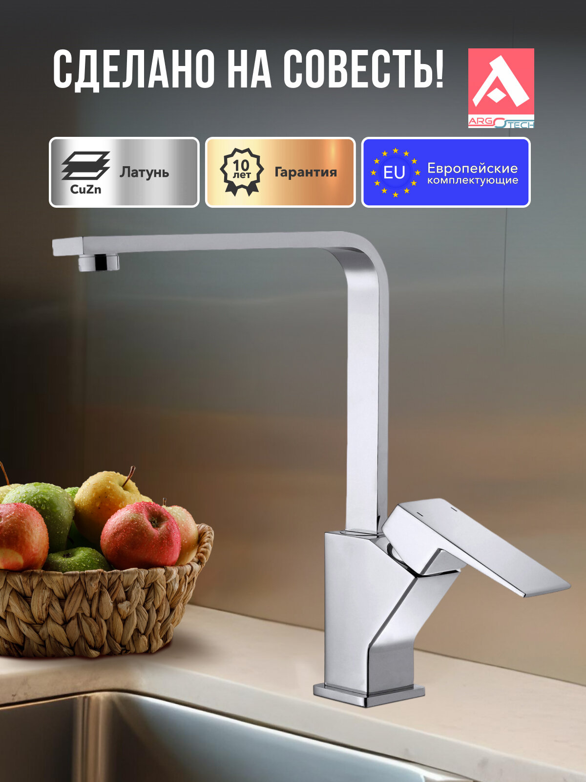 Смеситель для кухни Grano с высоким и поворотным изливом