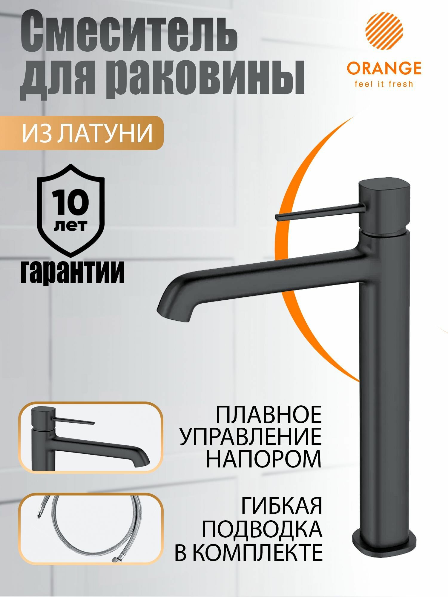 Смеситель для накладной раковины, высокий Orange Karl M05-121b, черный