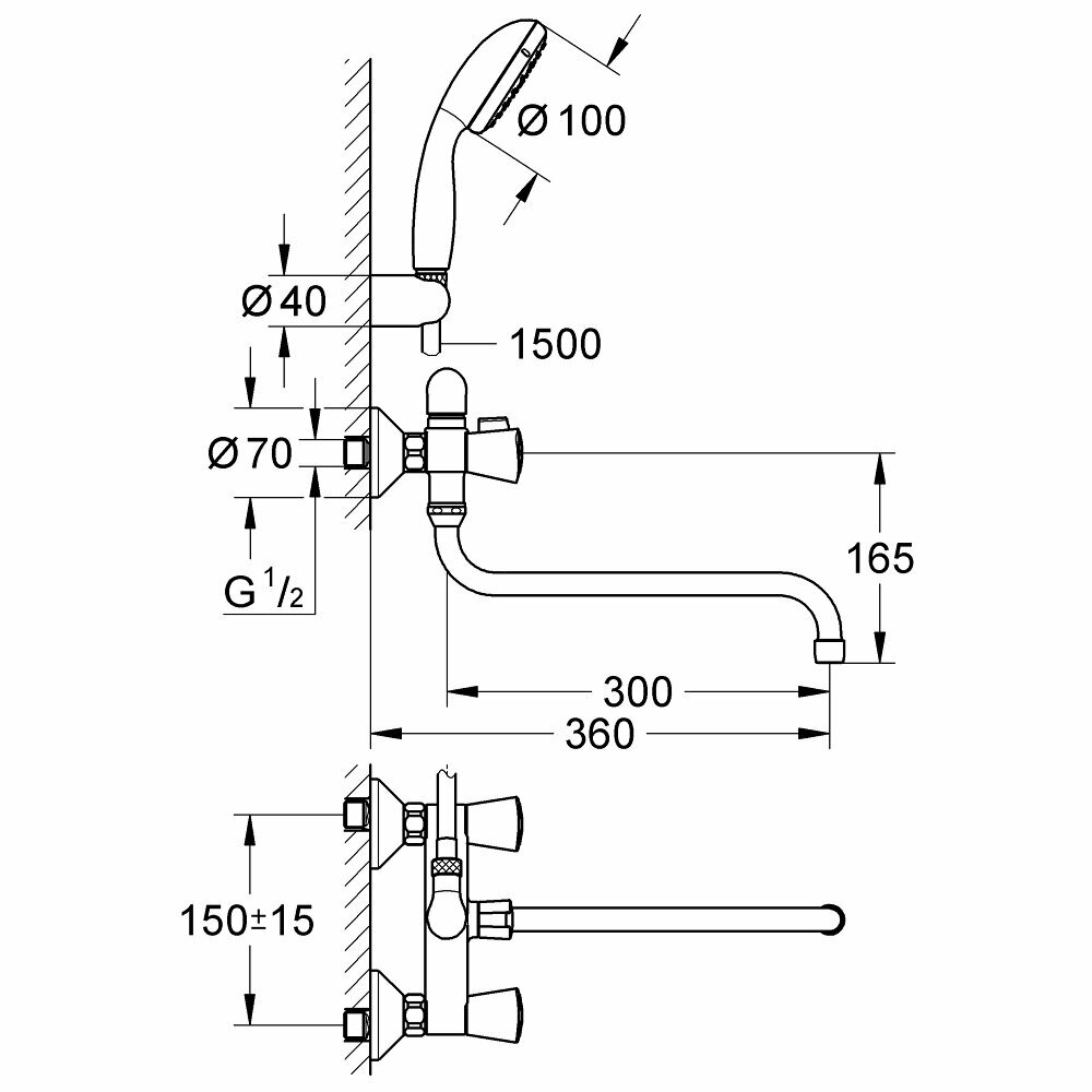 Смеситель универсальный GROHE Costa S с душевым гарнитуром New Tempesta 100, один режим, 9,5 л/мин, хром (2679210A)