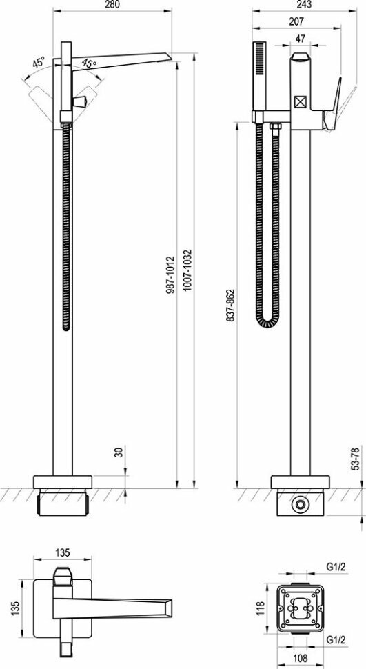 смеситель Ravak Смеситель Ravak Freedom FM 081.00 напольный