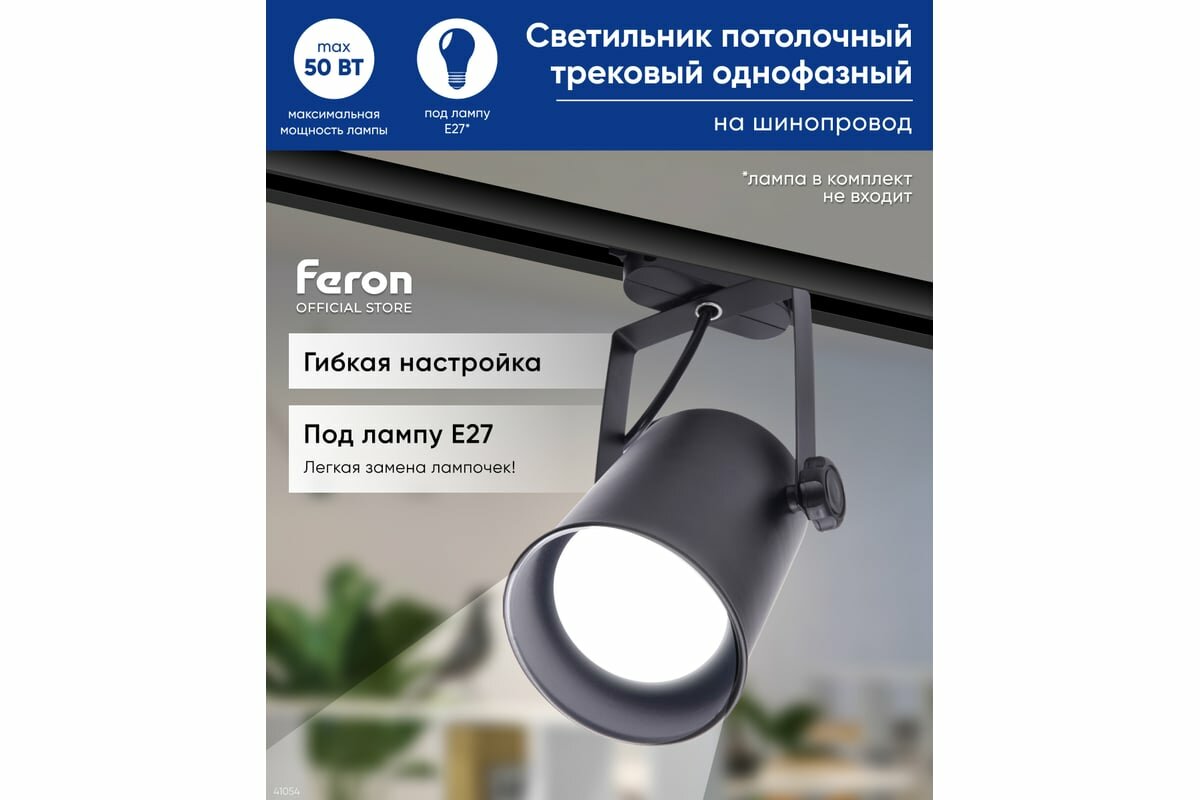 СохранитьСветильник трековый, под лампу E27, черный, AL157 Feron интересное: