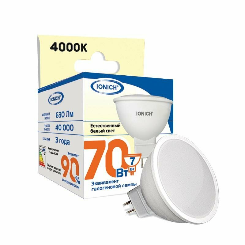 IONICH MR16 GU5.3 220V 7W(630lm) 4000К 4K 50x50 матов./пластик/алюм ILED-SMD2835-JCDR 1525