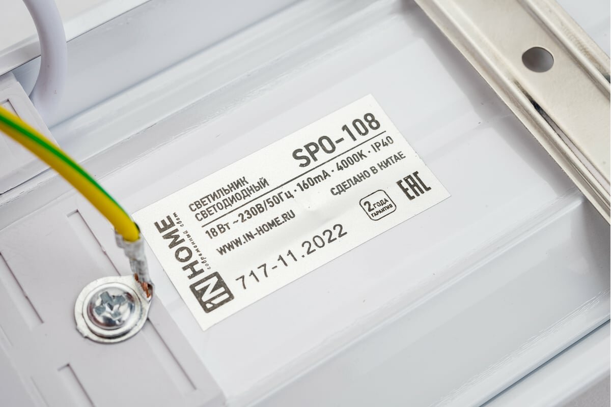 Светодиодный светильник IN HOME, SPO-108, 18Вт, 230В, 4000К, 1300Лм, 600мм, IP40 4690612029900