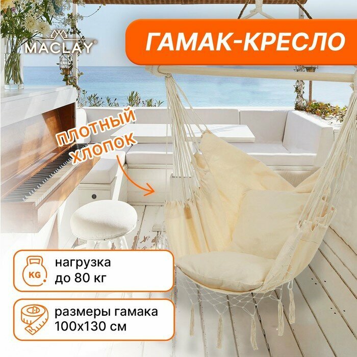 Гамак-кресло Maclay, подвесное, размер 100 х 130 х 100 см, максимальная нагрузка 80 кг, цвет бежевый