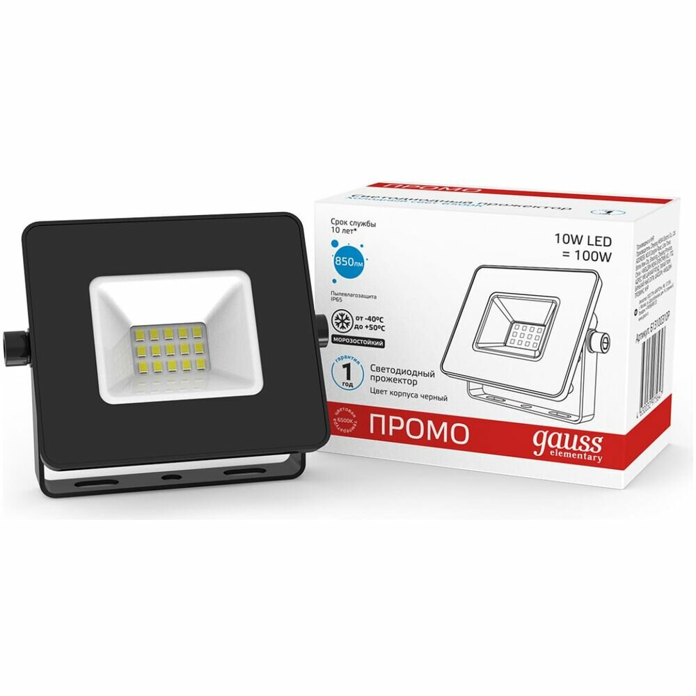 Купить Прожектор светодиодный 10W IP65 холодный свет 6500К черный Gauss Elementary
