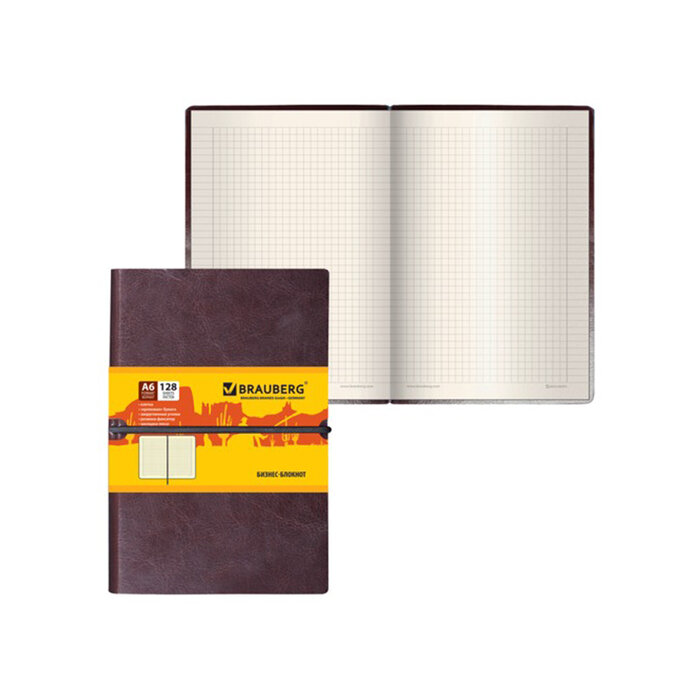 Бизнес-блокнот Brauberg А6, 100*150 мм, "Western", гладкий кожзам, резинка, клетка, 128 листов, коричневый (125241)