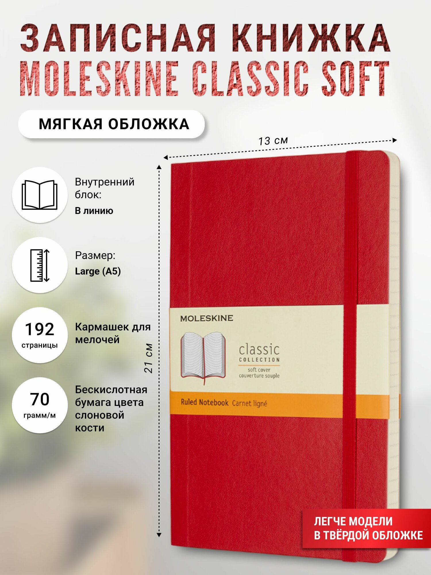 Записная книжка Moleskine Classic Soft(мягкая обложка), в линейку, Large (13x21 см), красная