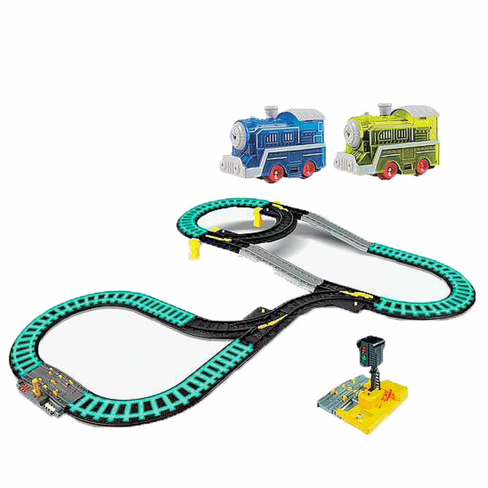| Дополнительная информация | два паровоза, семафор; рельсы и шпалы светятся в темноте |