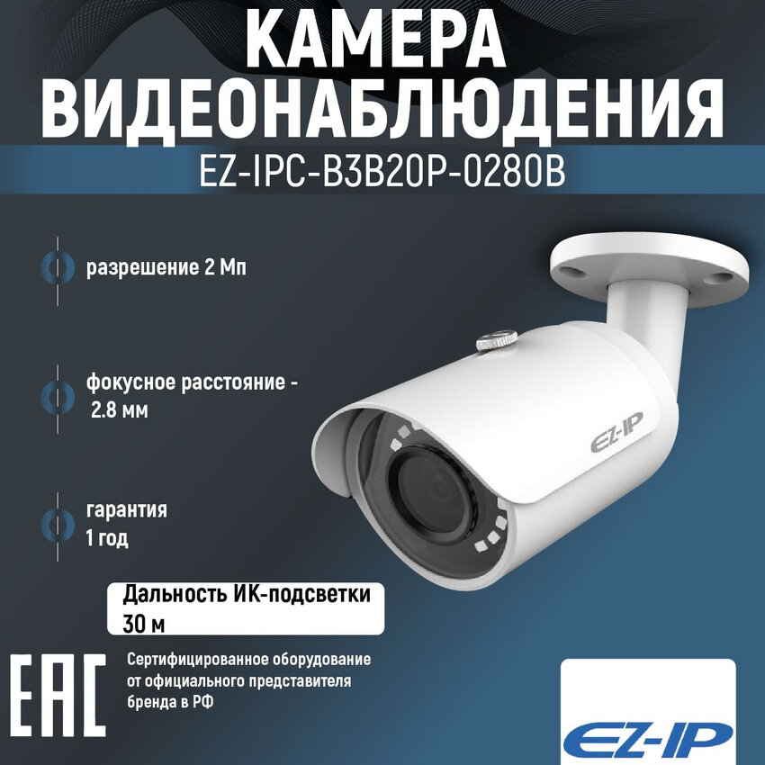 СохранитьEZ-IP by Dahua, EZ-IPC-B1B20P-0280B Цилиндрическая IP-видеокамера интересное:
