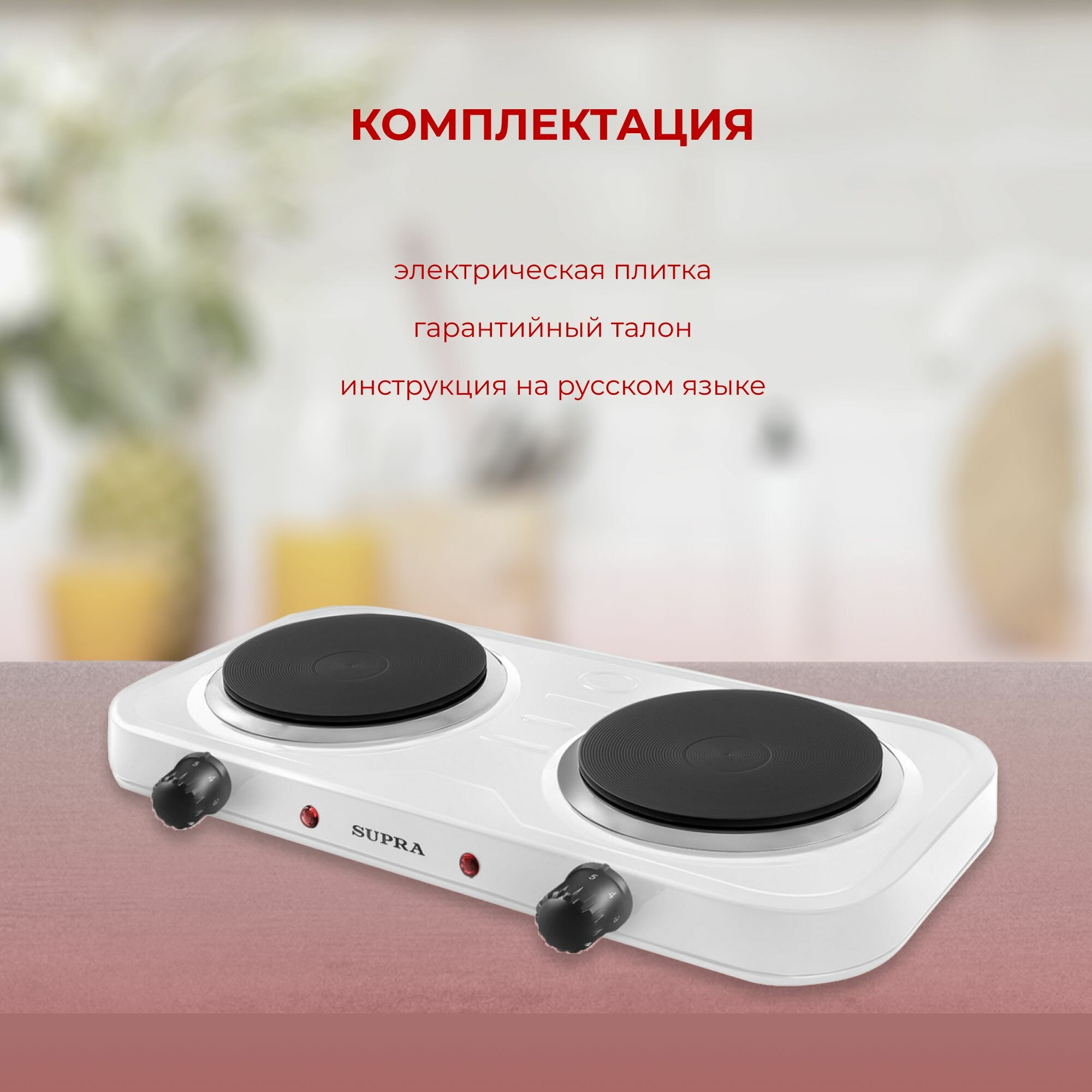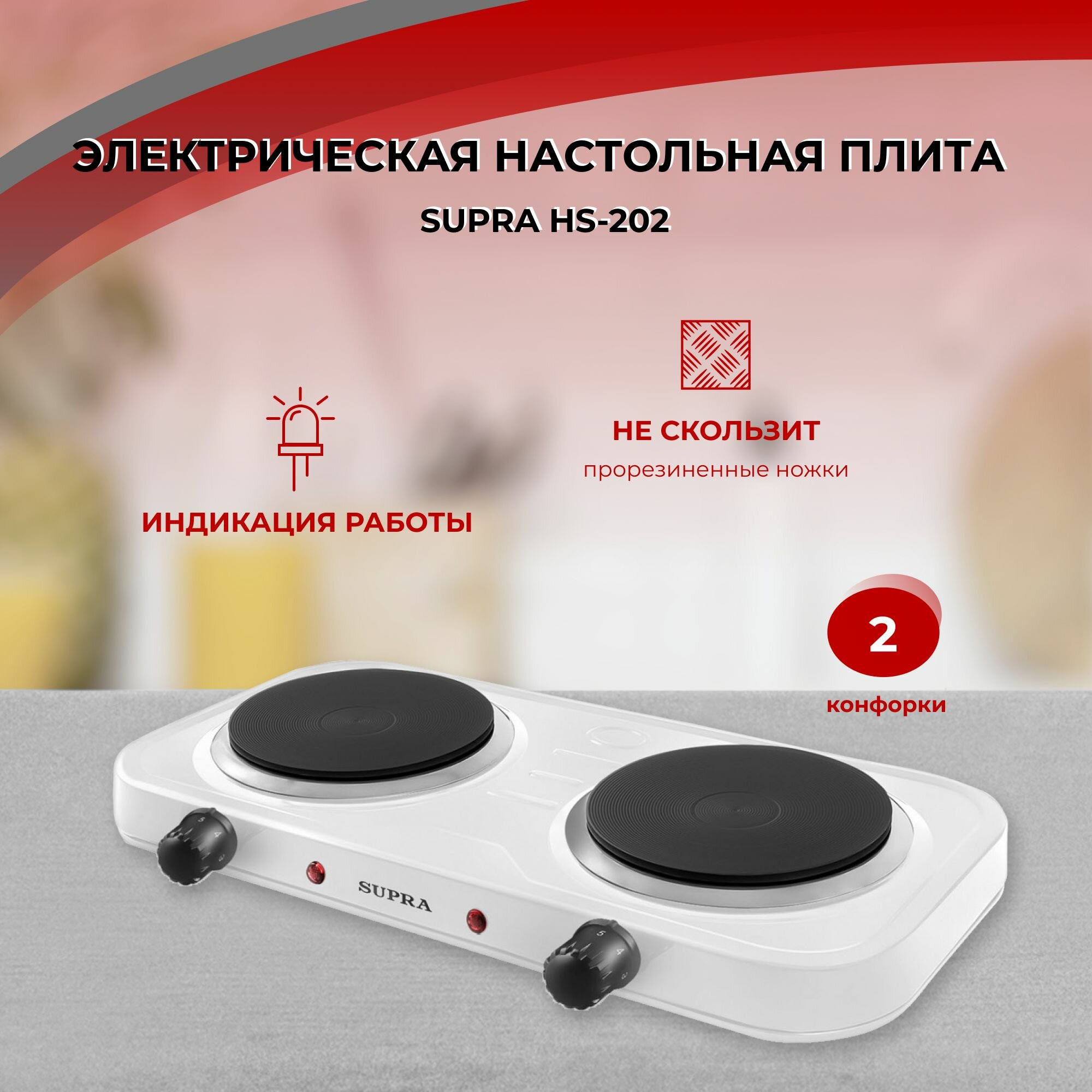 Плита настольная электрическая SUPRA HS-202 white (2 конф, чугун)
