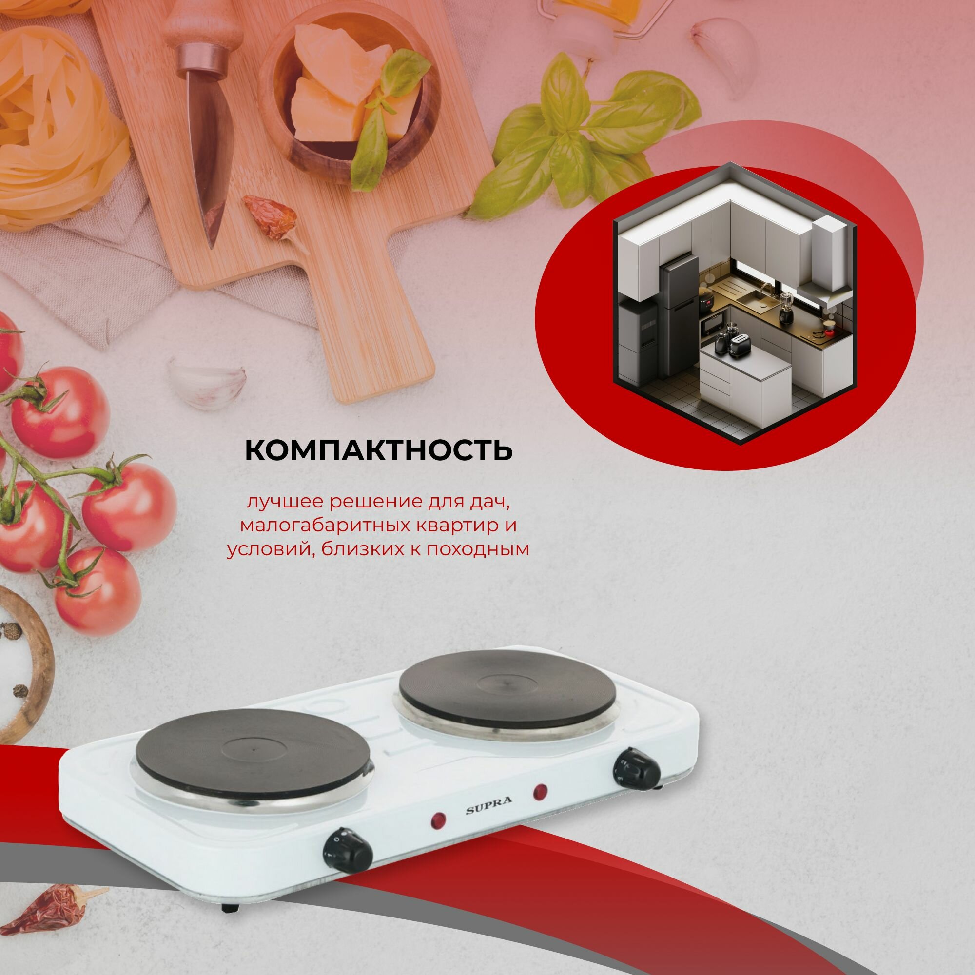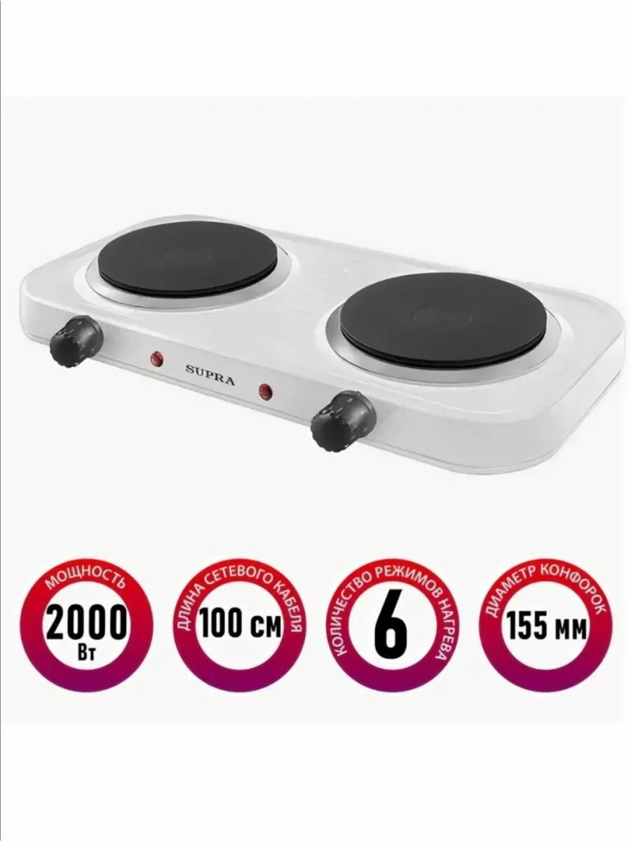 Электрическая плита SUPRA HS-202 WHITE 2 конфорка, белый