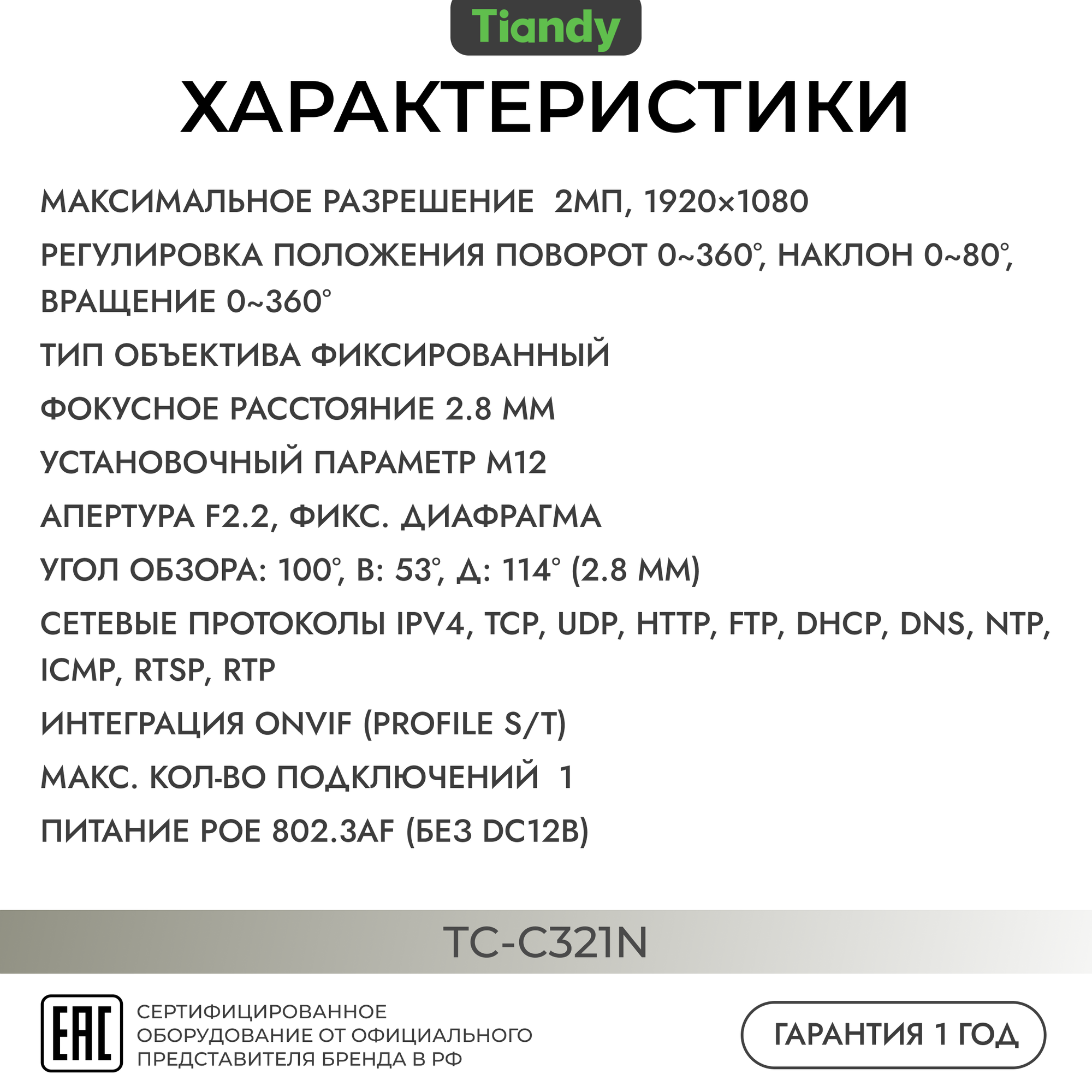 Видеокамера IP Tiandy Tc-c32xn I3/E/Y/2.8mm-V5.0