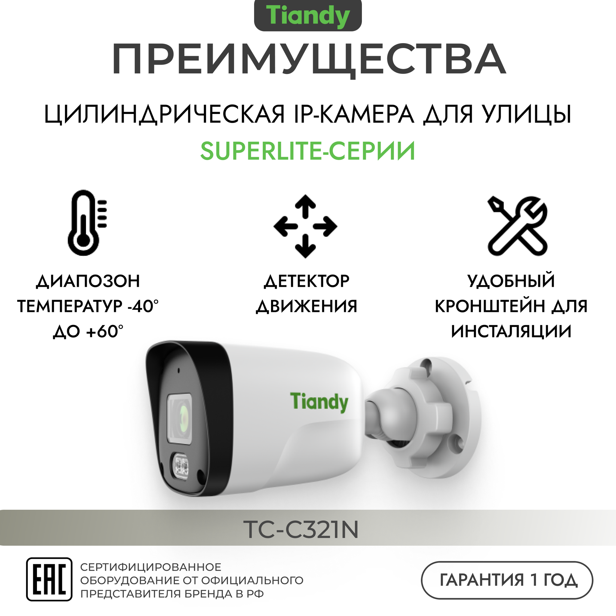Камера видеонаблюдения IP TIANDY Lite TC-C32XN I3/E/Y/2.8mm-V4.1, 1080р, 2.8 мм, белый [1d.20010.002989]