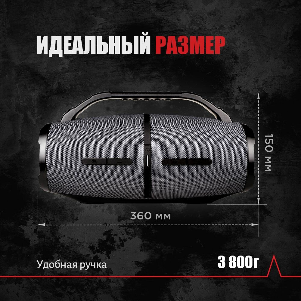 Портативная Bluetooth колонка Урал Гагарин ГР-007 черная, водонепроницаемая IP67, 60 Вт Мощность, TWS, FM-радио, беспроводная