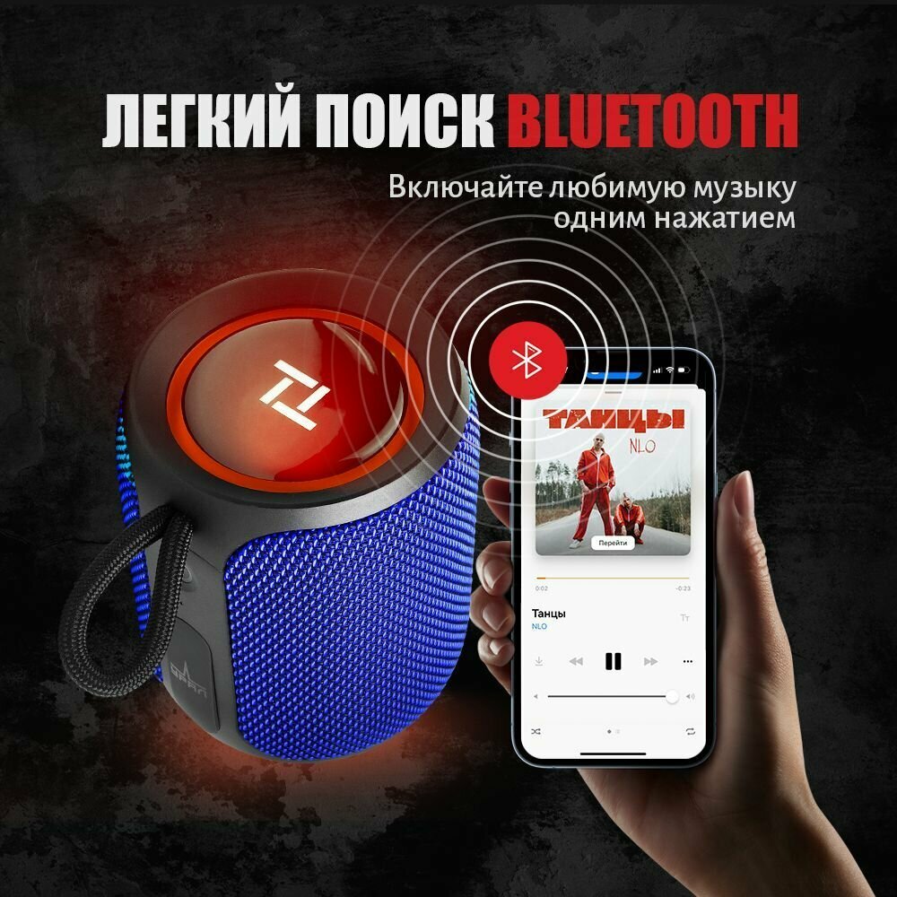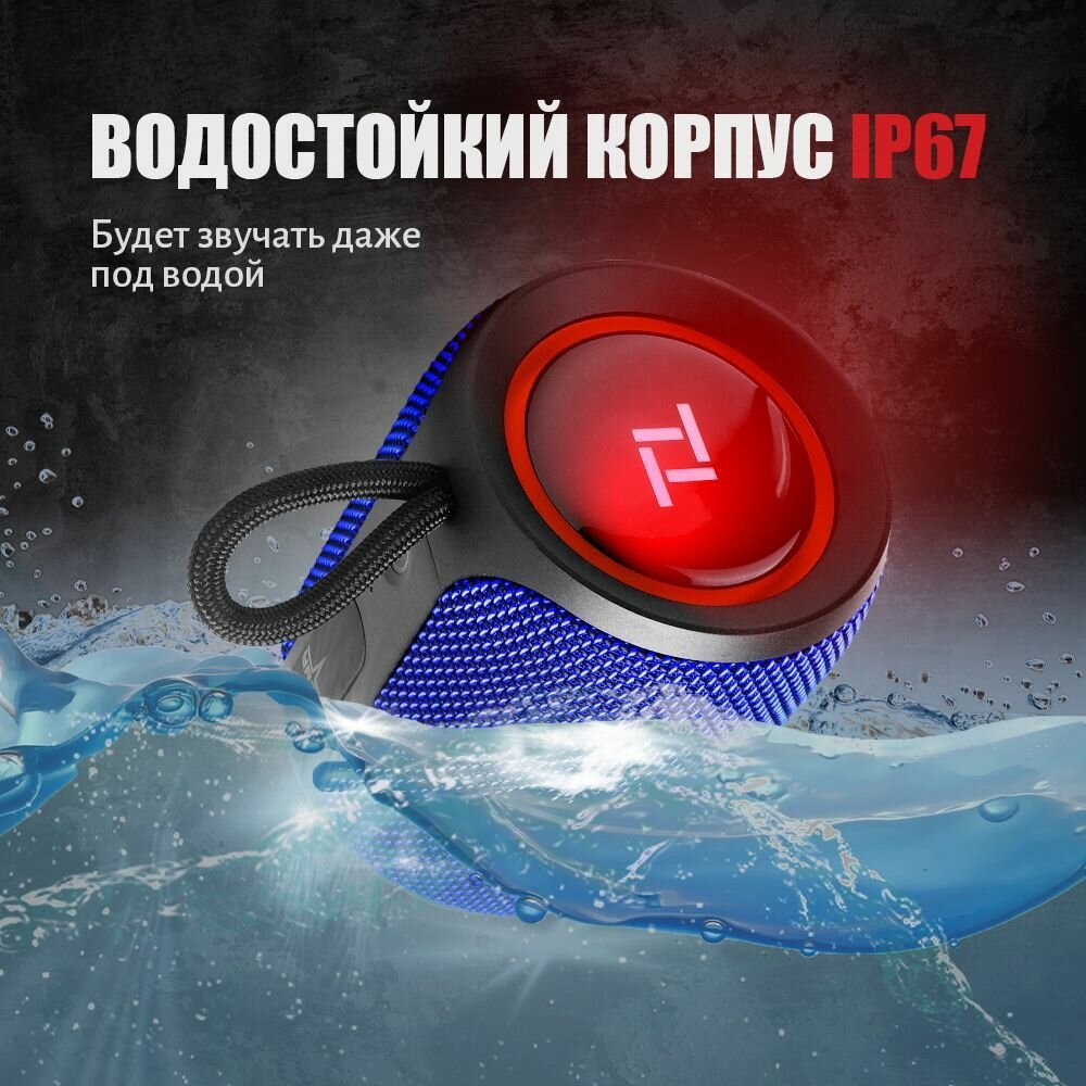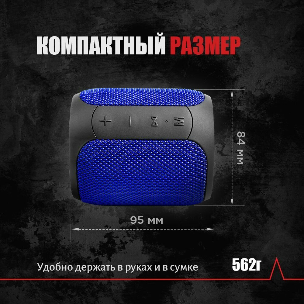 Портативная Bluetooth колонка Урал Гагарин ГР-007 синяя, водонепроницаемая IP67, 60 Вт Мощность, TWS, FM-радио, беспроводная