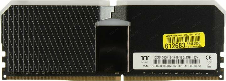 Модуль Thermaltake 16GB DDR4 3600 DIMM TOUGHRAM XG RGB Black Gaming Memory Non-ECC, CL18, 1.35V, Heat Shield, XMP 2.0, Kit (2x8GB), RTL (523103)