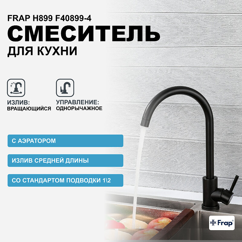 Ниже Вы можете прочитать отзывы на Смеситель для кухни Frap F40899-4, черный, ознакомится с подробными характеристиками, посмотреть интересные обзоры и фотографии на Смеситель для кухни Frap F40899-4, черный.