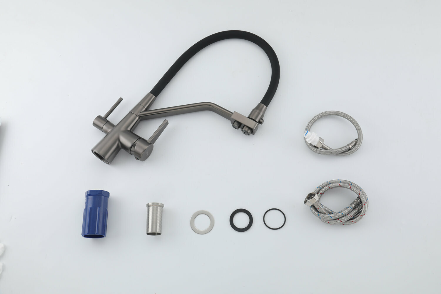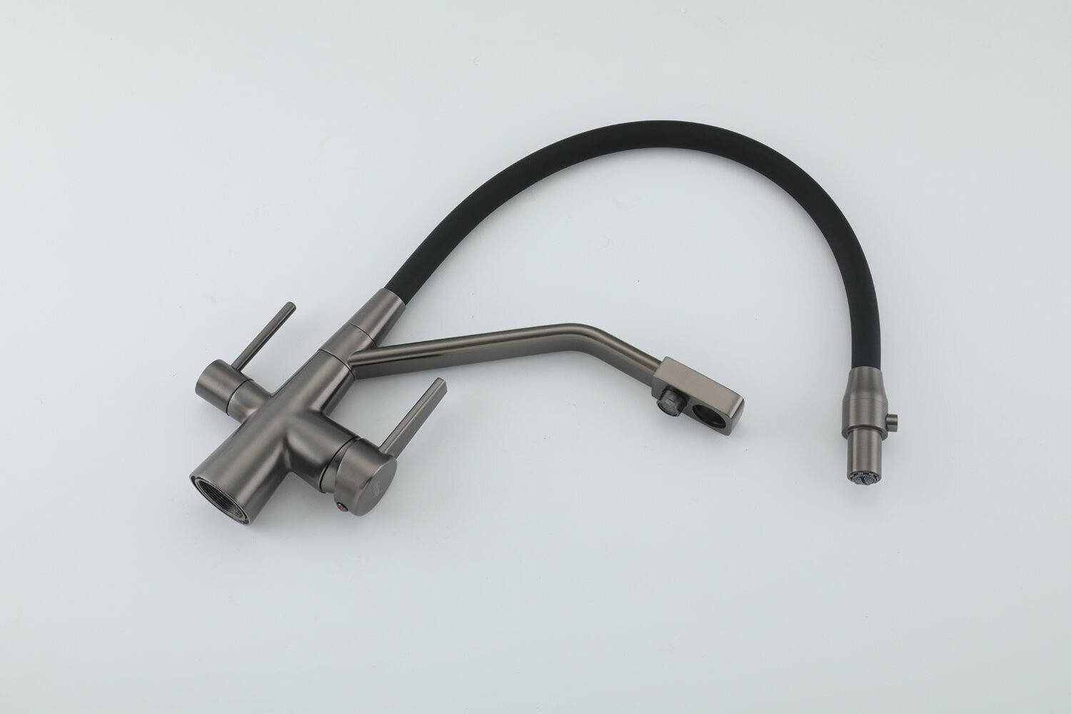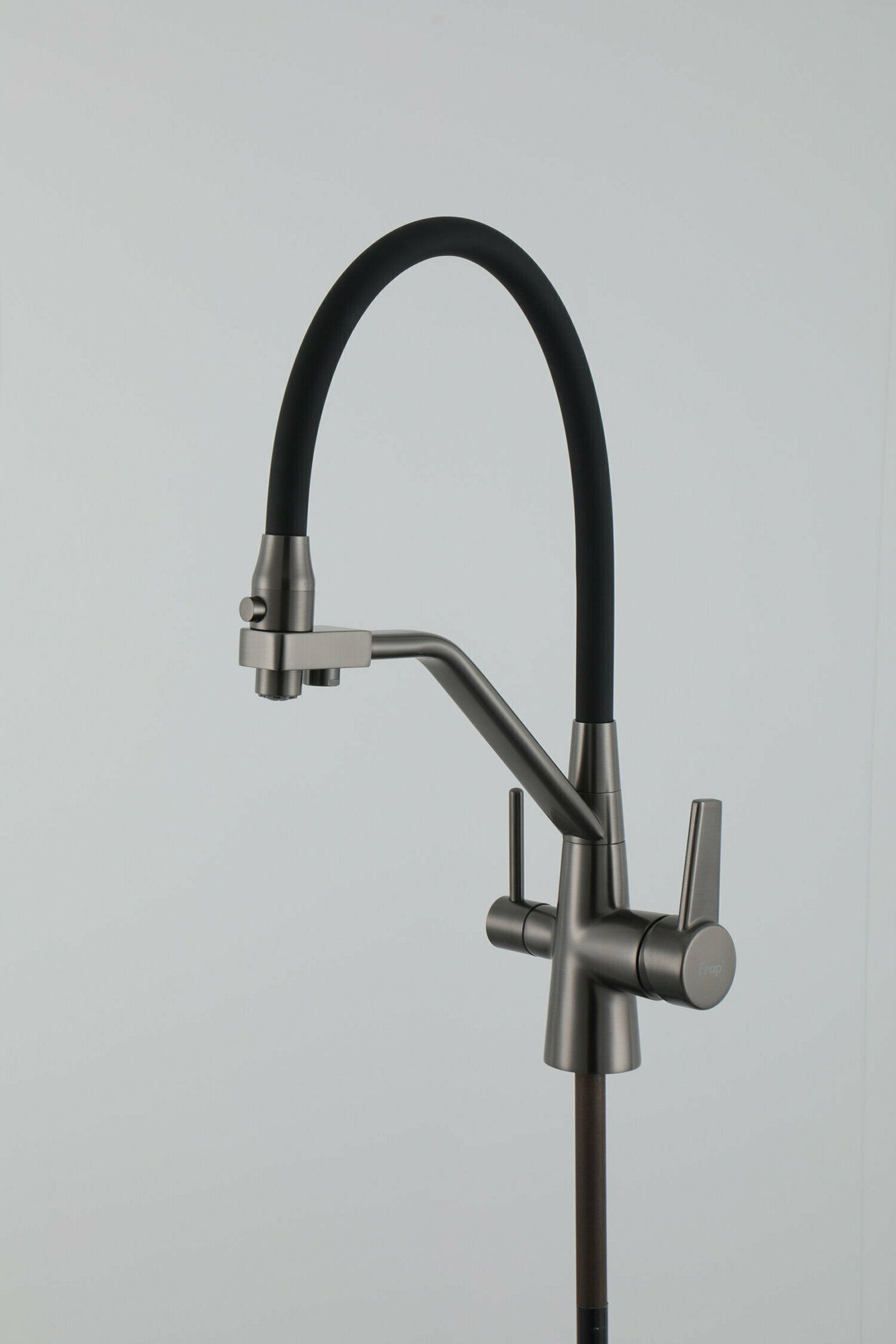 Смеситель для кухни с гибким изливом Frap F4398-5, с фильтром под питьевую воду, цвет сатиновый/черный, латунь