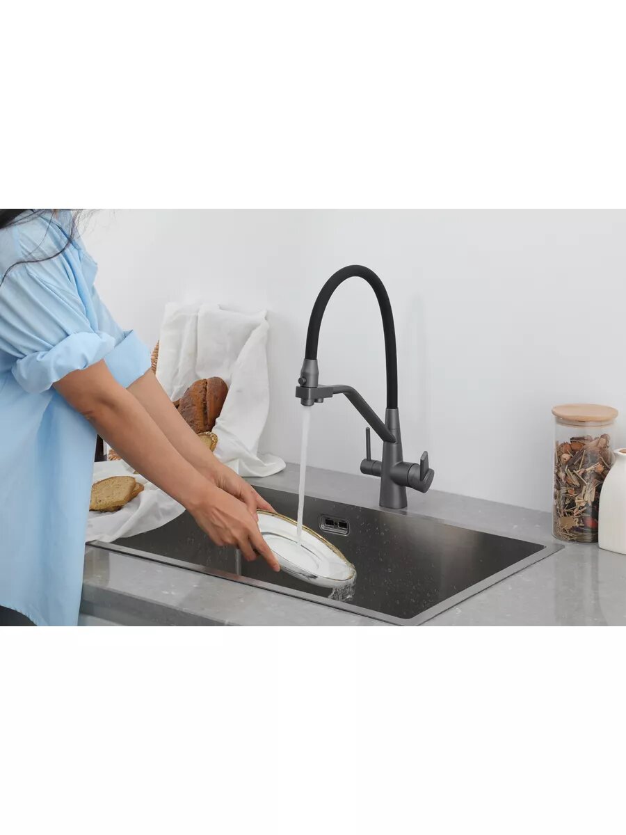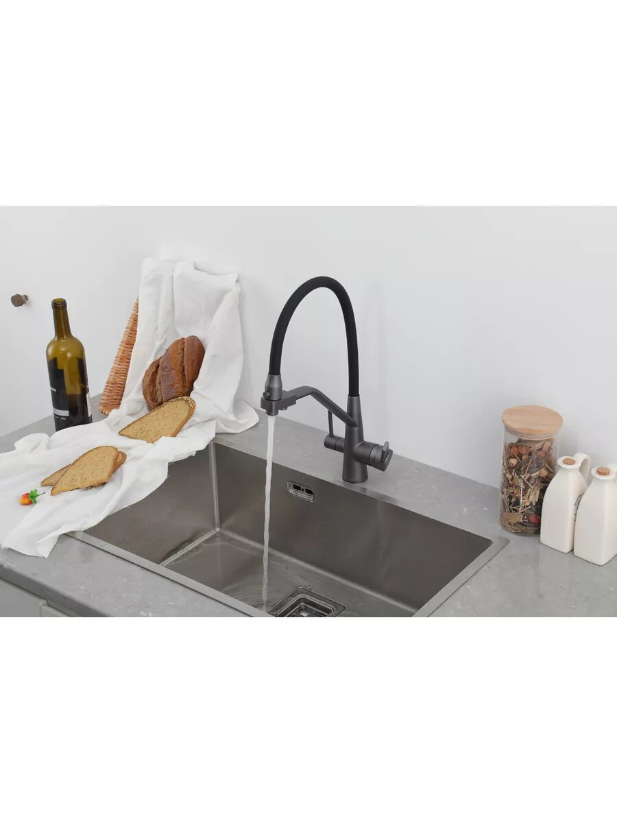 Смеситель для кухни Frap F43550-7 с подключением фильтра, графит