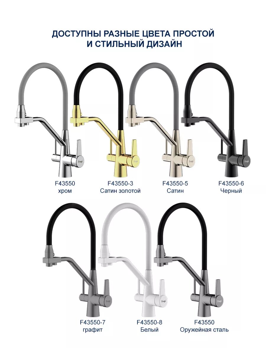 Смеситель для кухни Frap F43550-6 с подключением фильтра, черный