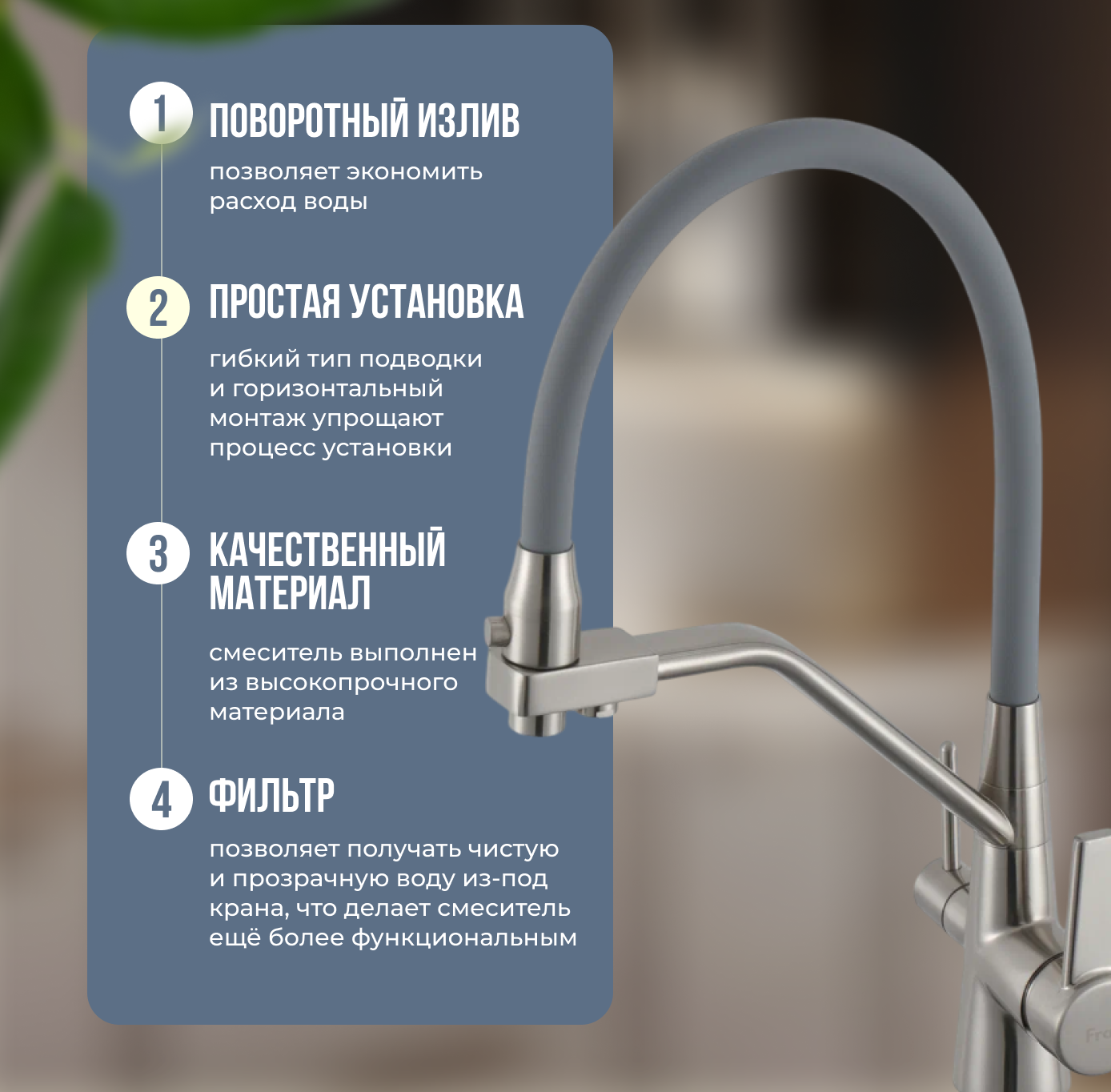 СохранитьСмеситель для кухни Frap F43550-5 с подключением фильтра, сатин/серый интересное: