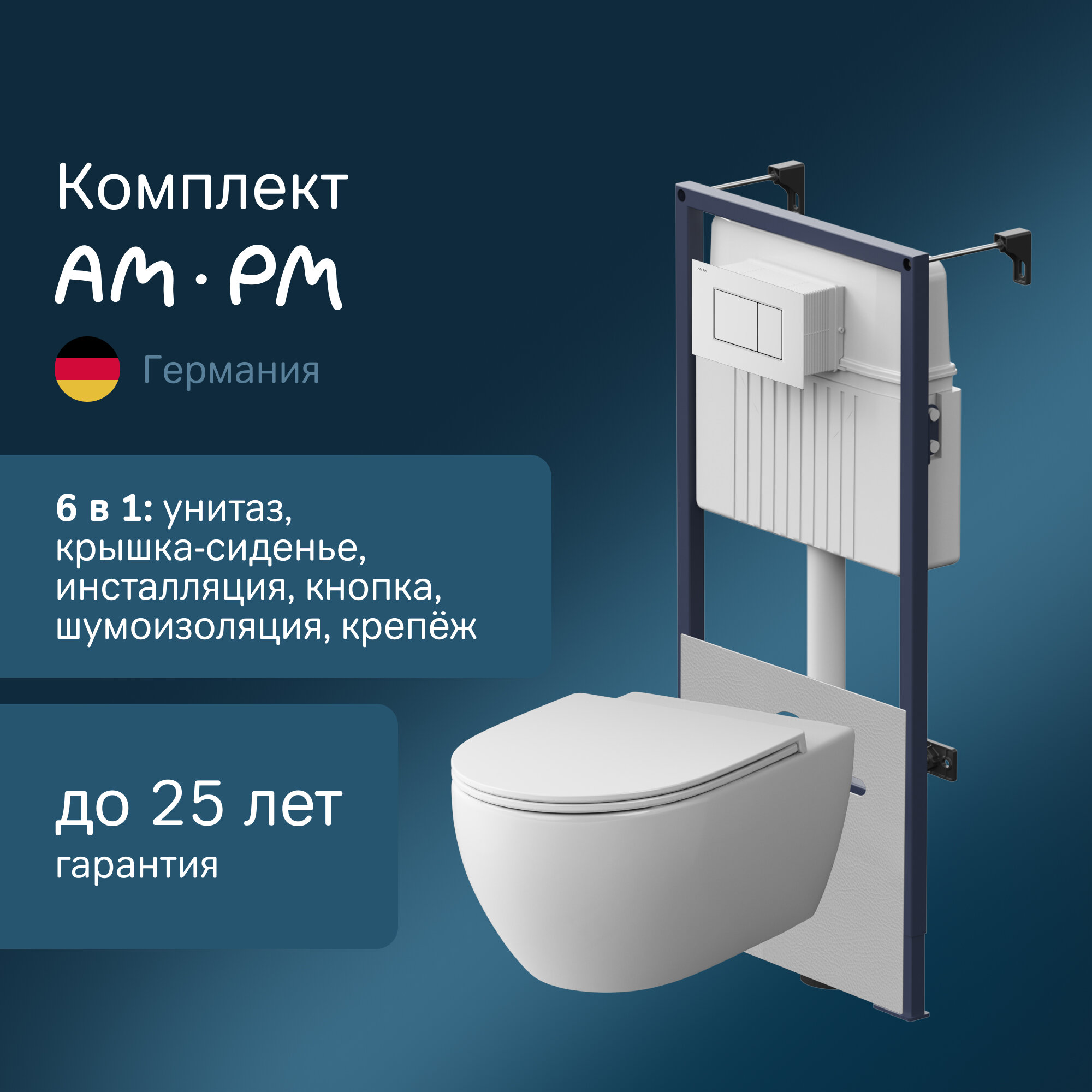 Инсталляция с подвесным унитазом AM.PM AWE безободковый, кнопка глянцевый белый, шумоизоляция интересное: