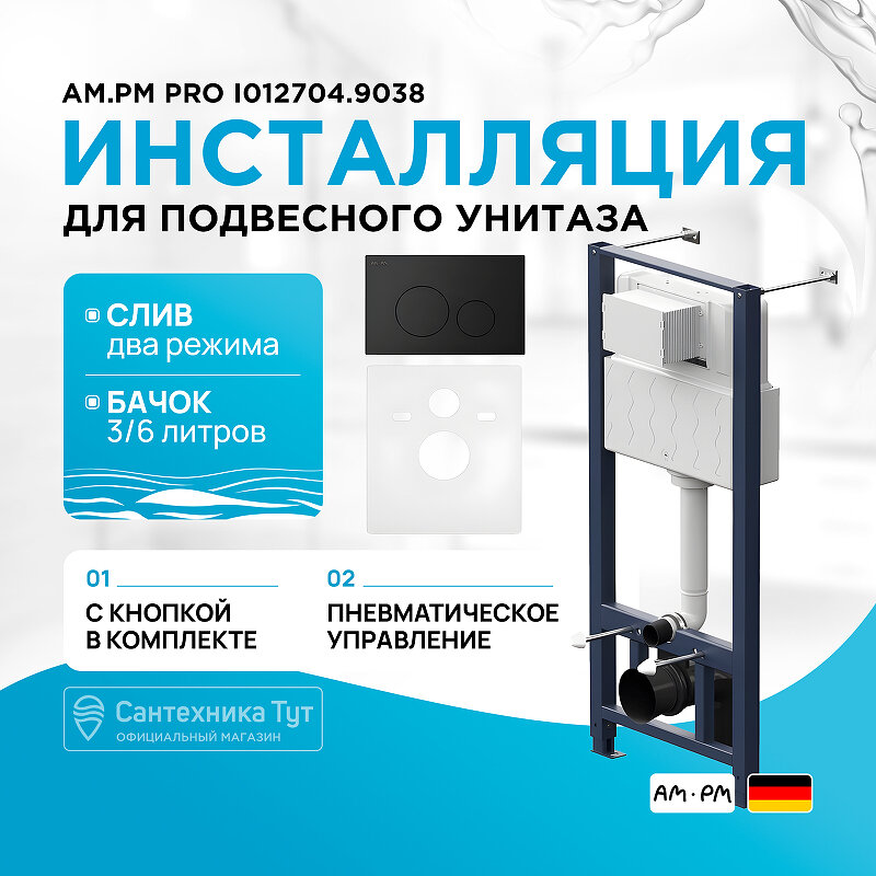 Ниже Вы можете прочитать отзывы на Система инсталляции для подвесных унитазов Am.Pm Pro I012704.9038 с клавишей смыва, ознакомится с подробными характеристиками, посмотреть интересные обзоры и фотографии на Система инсталляции для подвесных унитазов Am.Pm Pro I012704.9038 с клавишей смыва.