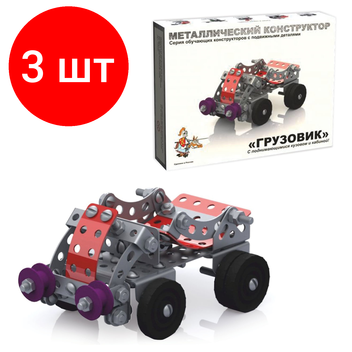Купить Комплект 3 шт, Конструктор металлический "Грузовик", с подвижными деталями, 149 элементов, "Десятое королевство", 02032