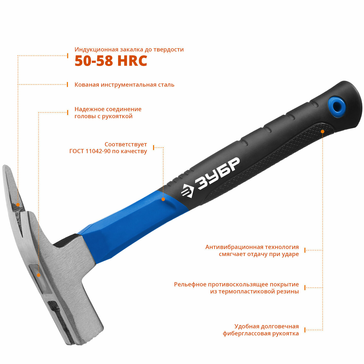 Молоток каменщика ЗУБР 600 г, цельнокованный