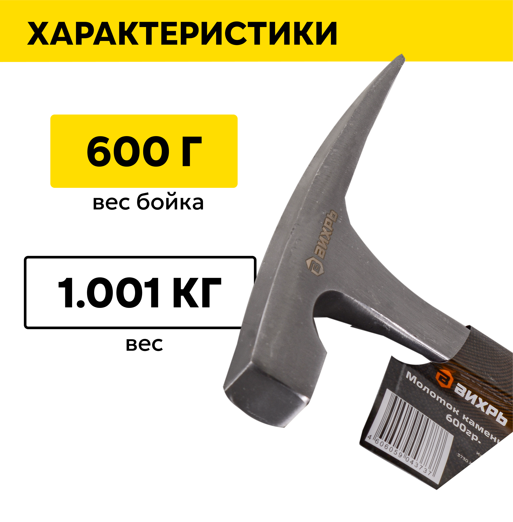 Молоток каменщика Вихрь 600гр, цельнометаллический, двухкомпонентная рукоятка