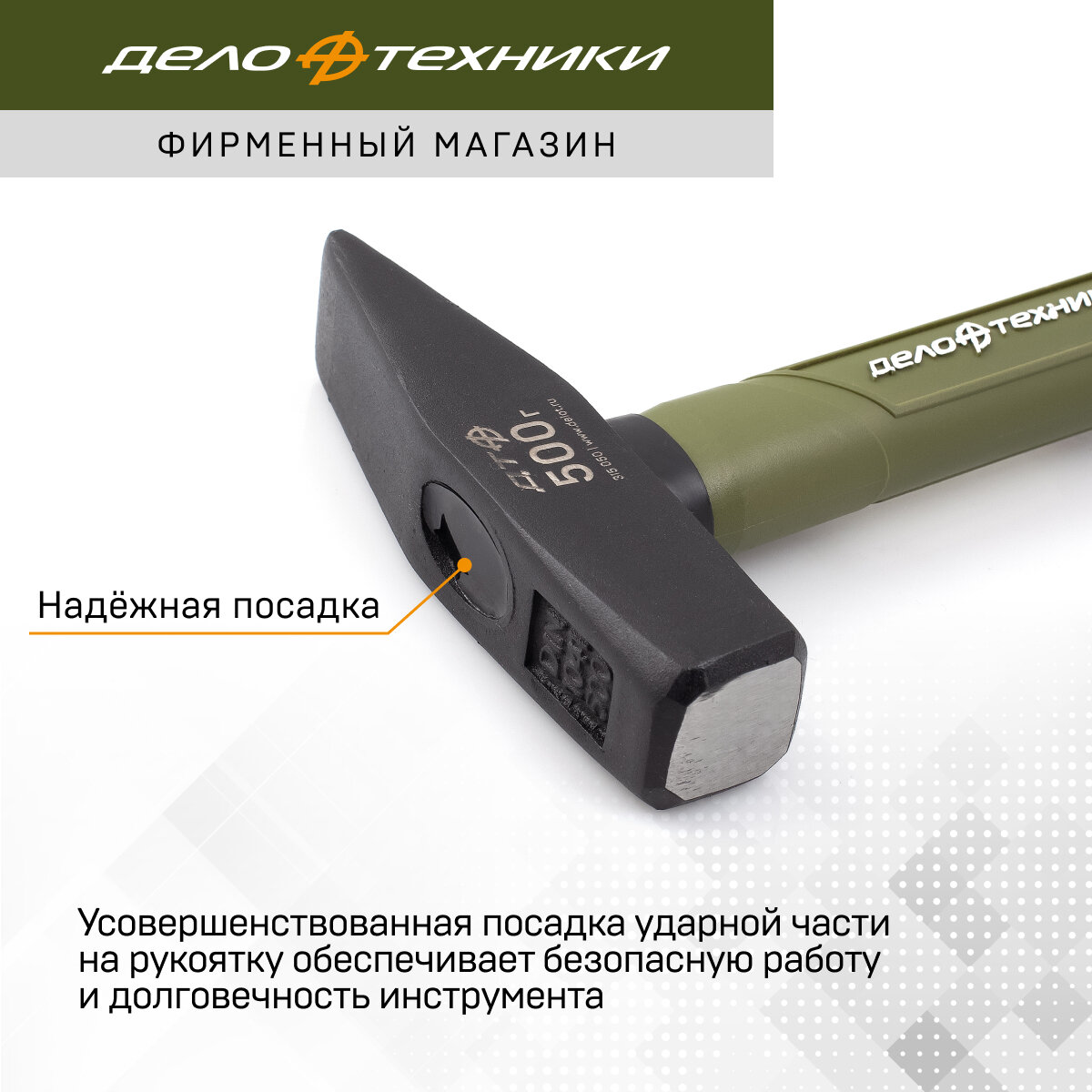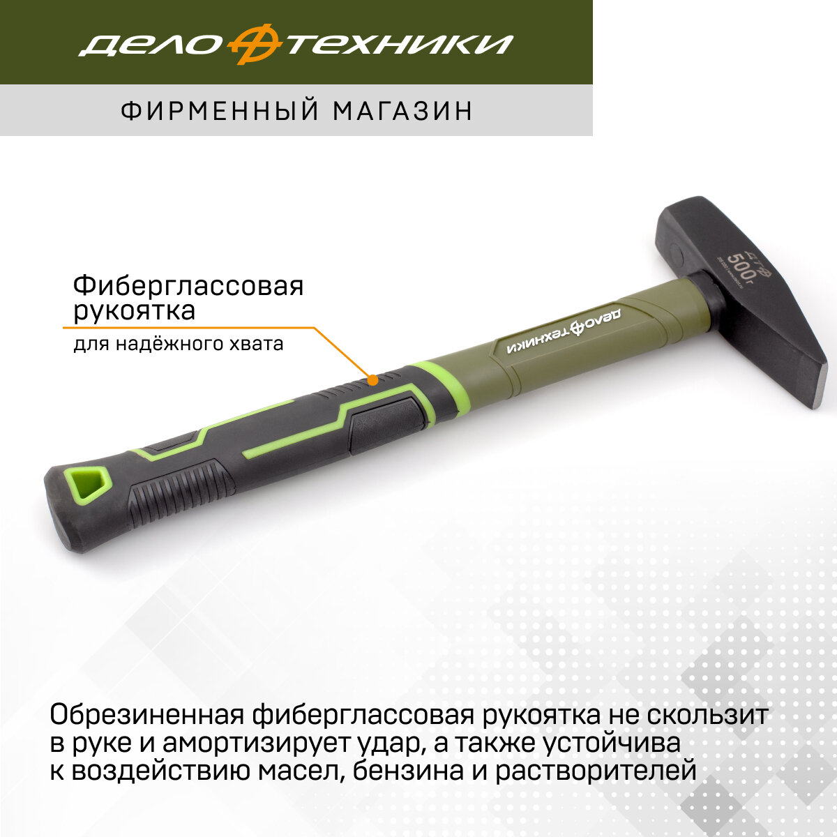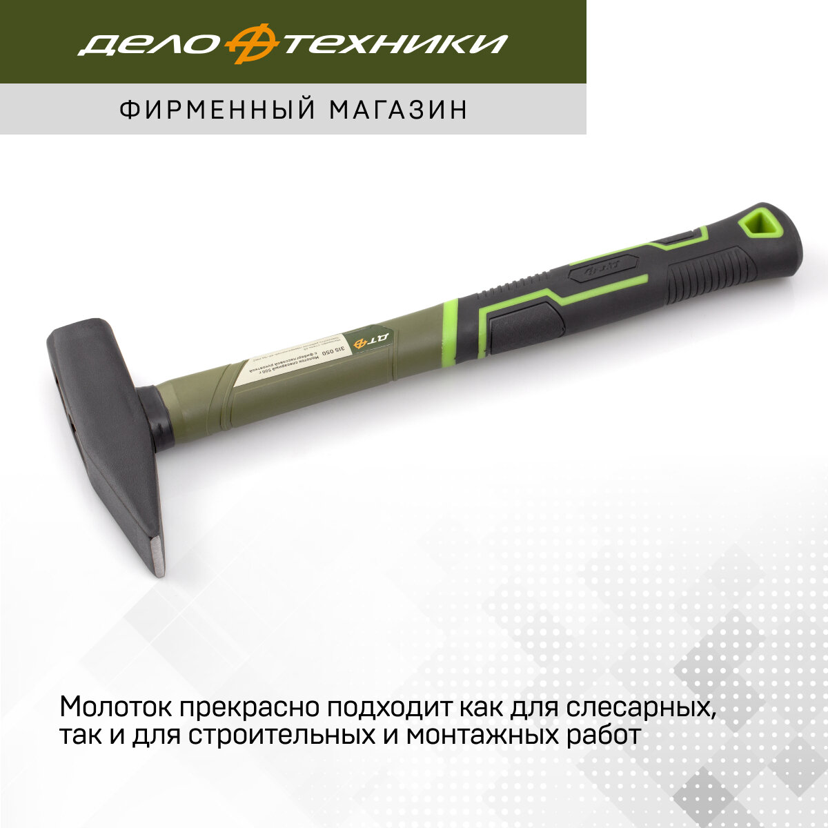 Молоток слесарный Дело Техники 315020, квадратный боек, фибергласовая рукоятка
