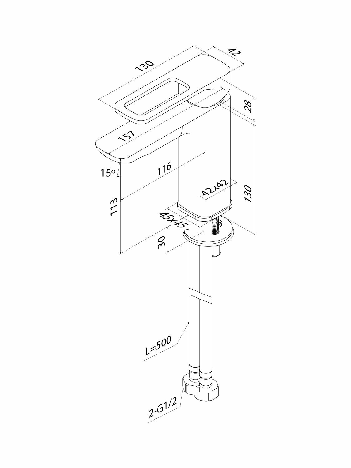 | Комплектация | смеситель - 1 шт., подводка для воды - 2 шт., комплект крепления - 1 шт., |