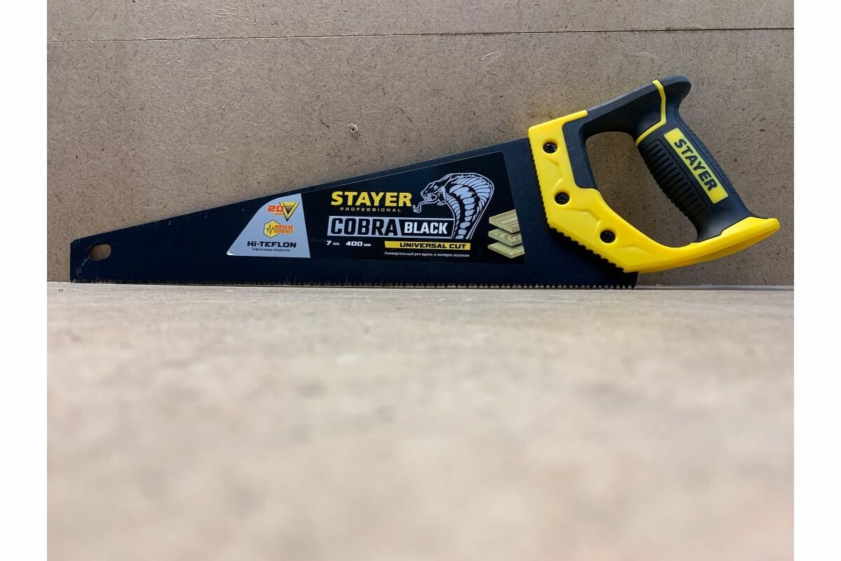 Ножовка универсальная (пила) ″Cobra BLACK″ 400 мм, 7TPI, тефлон покрытие, рез вдоль и поперек волокон, для средних заготовок, фанеры, ДСП, МДФ, STAYER