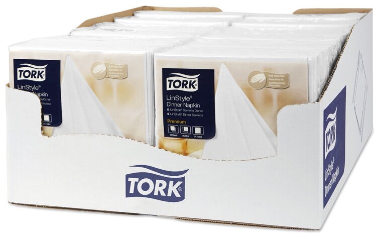 Купить Салфетки бумажные нетканые сервировочные TORK LinStyle Premium, 39х39 см, 50 шт., белые, 478711