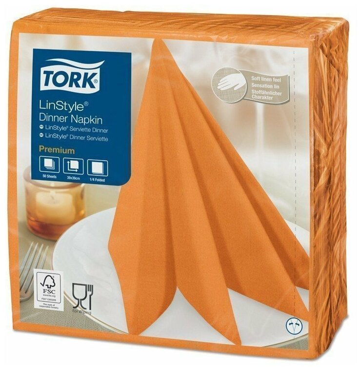 Салфетки бумажные нетканые сервировочные TORK LinStyle Premium, 39х39 см, 50 шт., оранжевые, 478851 интересное: