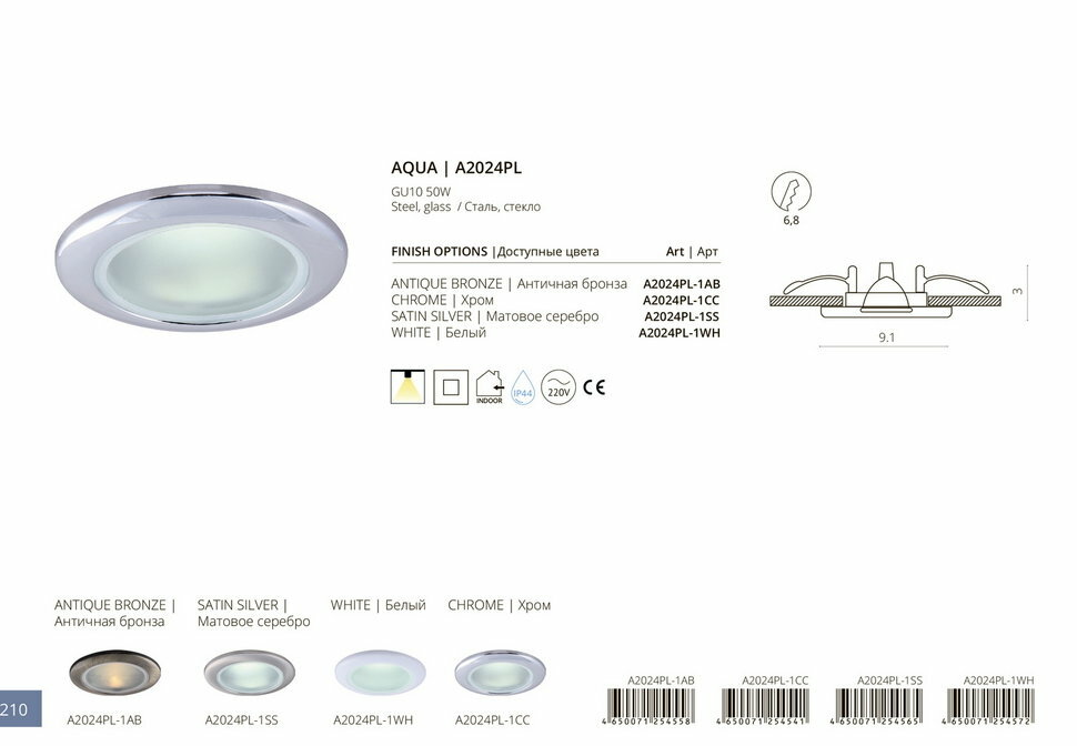 Светильник встраиваемый AQUA A2024PL-1WH