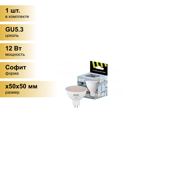 Лампа светодиодная LED 12Вт 5000K GU5.3 230/50 ФАZА | код 5038714 | JazzWay (6шт.в упак.)